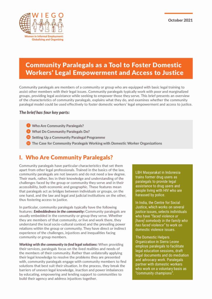 Community Paralegals as a Tool to Foster Domestic Workers’ Legal Empowerment and Access to Justice Domestic workers around the world face a decent work deficit that is due to exclusions from labour laws, the low value associated with the... Read More
