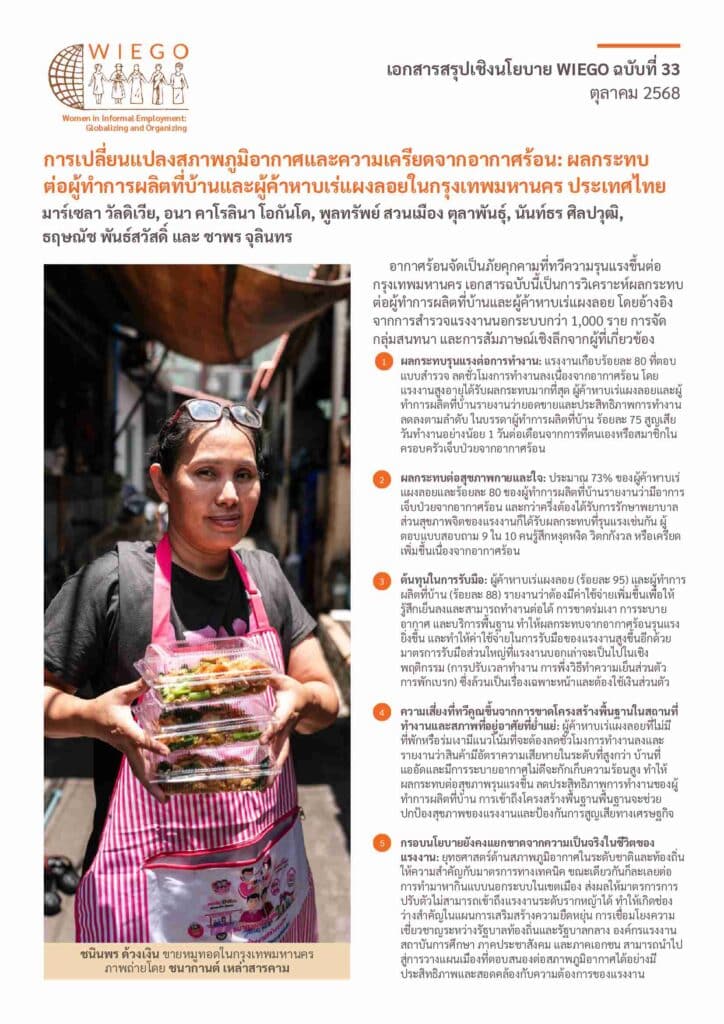 ร้อนจนทนทำงานแทบไม่ไหว: ผลกระทบที่มีต่อผู้ทำการผลิตที่บ้านและผู้ค้าหาบเร่แผงลอยในกรุงเทพมหานคร