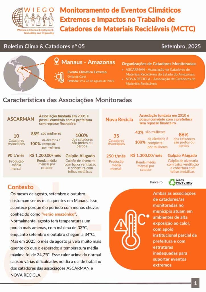 Monitoramento de Eventos Climáticos Extremos e Impactos no Trabalho de Catadores de Materiais Recicláveis – MCTC
