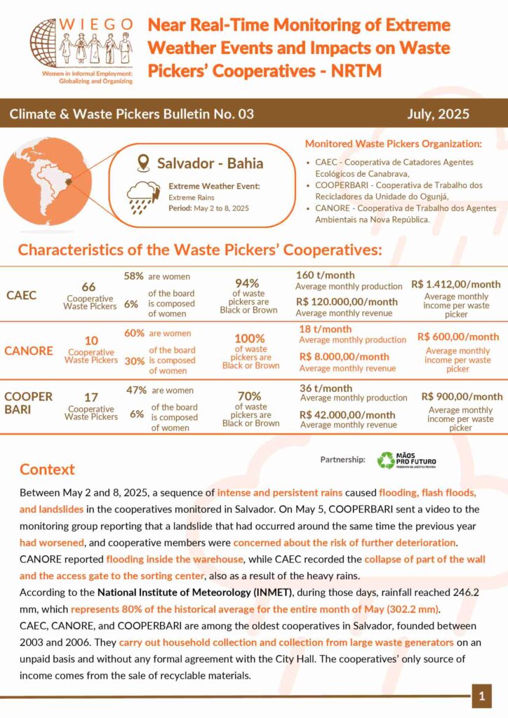Near-Real-Time Monitoring Extreme Weather Events and Impacts on Waste Picker Cooperatives – NRTM