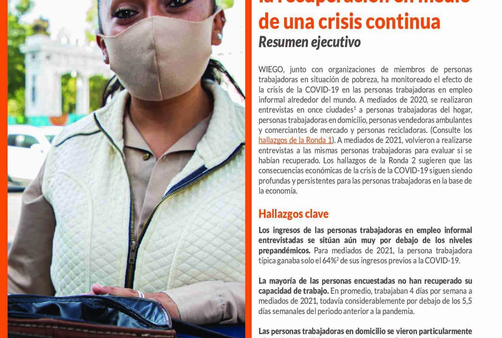 La COVID-19 y el trabajo informal en once ciudades: caminos para la recuperación en medio de una crisis continua – Resumen ejecutivo