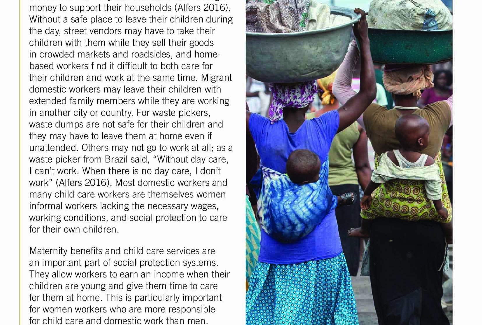 Esta publicación muestra que las ayudas a la maternidad para las trabajadoras en empleo informal y el cuidado infantil merecen una especial atención tanto de sus organizaciones y movimientos como de las autoridades locales y nacionales.