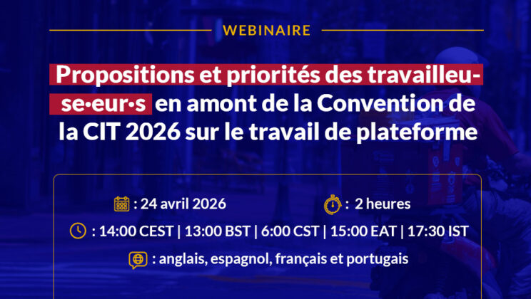 Lors de la Conférence internationale du Travail de cette année, les employeurs, les États membres et les travailleuse·eur·s délibéreront sur l’adoption d’une nouvelle norme du travail afin de promouvoir le travail décent dans l’économie de plateforme. Dans le but d’assurer une représentation juste et effective des travailleuse·eur·s, et des femmes en particulier, WIEGO et le SCIS organisent ce webinaire le 9 mars à 13h00 GMT visant à mener une réflexion critique sur nos priorités, stratégies et objectifs communs.