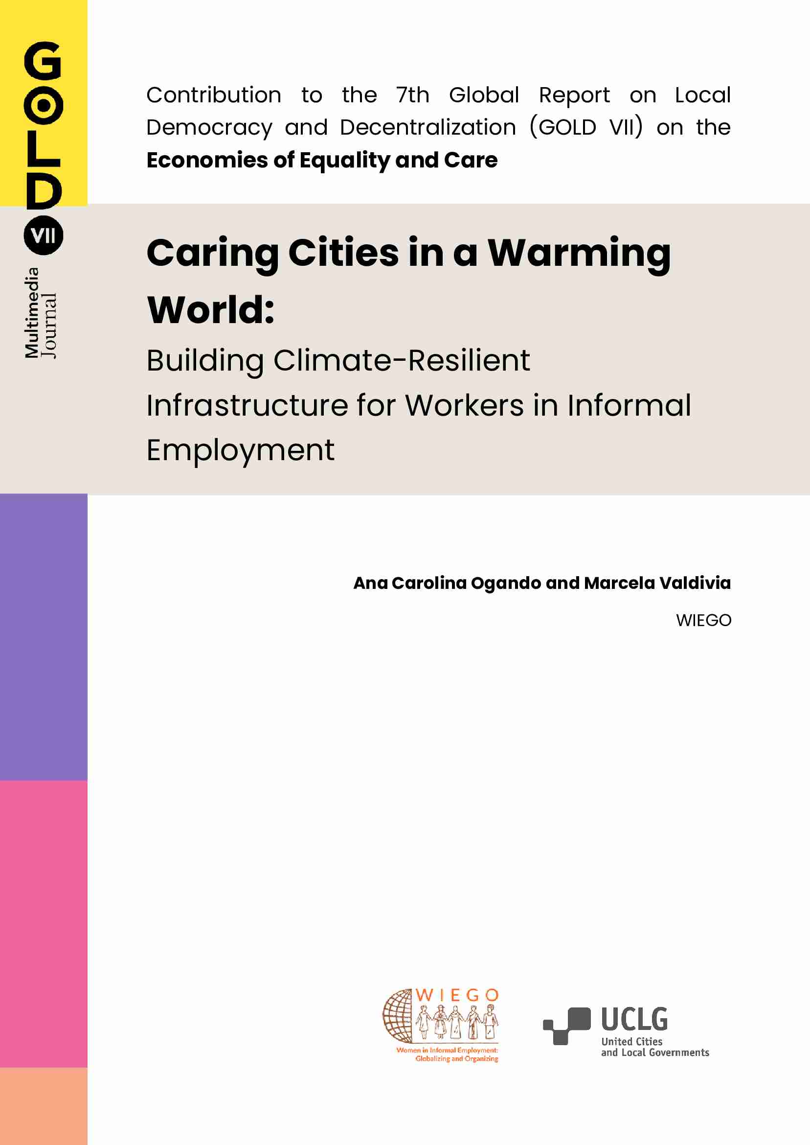 This WIEGO contribution to the GOLD VII Report explores how cities can integrate care principles into climate adaptation and urban infrastructure planning to protect workers in informal employment. Drawing on experiences from Brazil’s Acamares Waste Pickers’ Cooperative and HomeNet Thailand, the publication demonstrates how worker organizations co-design both “hard” and “soft” infrastructures, such as upgraded sorting centers, social networks, and public health systems, to strengthen resilience and inclusion. The article proposes actionable policy pathways for local governments to embed care, equity, and worker participation in climate and urban policies.